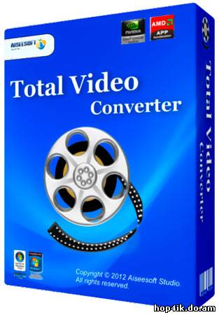 Aiseesoft Total Video Converter — это лучшее программное обеспечение, предназначенное для конвертирования видео, которое создано с целью помочь пользователям конвертировать видео для MP4/MKV/WMV/AVI и других популярных форматов, таких как: MP4, H.264, AVI, MP3, WMV, WMA, FLV , MKV,MPEG-1, MPEG-2, 3GP, 3GPP, VOB, DivX, MOV, RM, RMVB, M4A, AAC, WAV, и т.д.с высокой скоростью и отличным качество изображения. Кроме того, Aiseesoft Total Video Converter может также извлекать аудио из видео файлов и конвертировать их в M4A, MP3, AC3, AAC, WMA, WAV, OGG. Возможности программы: • Поддержка популярных мультимедиа проигрывателей, таких как: PSP, iPod, iPhone, PS3, Zune, iRiver, Walkman, Pocket PC и т.д. • Функция извлечения аудиодорожек из входного файла и конвертации в форматы M4A, MP3, AC3, AAC