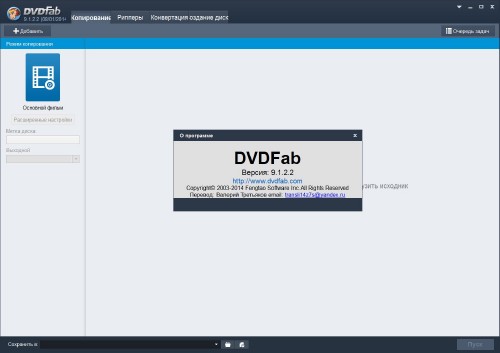 Операционная система: Windows XP/Vista/7/8/8.1 Название Программы: DVDFab Версия программы: 9.1.5.3 Final Последняя версия программы: 9.1.5.3 Final Язык интерфейса: Русский, Английский, и другие Лечение: в комплекте Тип файла: .rar Размер: 53,49 Мб