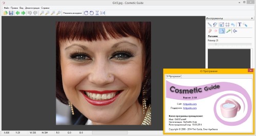 | Сборник состоит из 8 не требующих установки графических программ от Tint Guide. При помощи этой сборки Вы сможете без труда улучшить качество Ваших цифровых фотографий. Каждая из программ, входящих в сборку, имеет демонстрационные примеры, справку на русском языке. Список программ: Beauty Guide 2.1.8 (10.05.2014) Brightness Guide 2.2.1 (10.05.2014) Cosmetic Guide 2.1.8 (10.05.2014) Image Resize Guide 2.1.8 (10.05.2014) MakeUp Guide 2.1.8 (10.05.2014) Pet Eye Fix Guide 2.1.8 (10.05.2014) Photo Montage Guide 2.1.8 (10.05.2014) Picture Cutout Guide 3.1.8 (10.05.2014) Beauty Guide позволяет нанести макияж и устранить косметические дефекты непосредственно на фотографии. Отредактированные с помощью этой программы, Ваши фото станут еще лучше! Поможет накрасить губы; нанести румяна, тени и пудру; подвести глаза и изменить их цвет; разгладить морщины; уменьшить отеки, припухлости и мешки под глазами; удалить родимые пятна и бородавки; отбелить зубы. Все это Вы сможете отредактировать прямо на фото! Особенности программы: - поддерживает работу по twain интерфейсу (сканеры, камеры и пр.); - может работать как плагин в Adobe Photoshop и других программах обработки фото; - включает демонстрационные примеры обработки изображений. Brightness Guide - программа выравнивает яркость фото, осветляет темные области. - Позволяет осветлить темные области на фотографии, оставляя светлые области нетронутыми. - Параметры осветления могут подбираться в реальном времени - изменения элементов управления немедленно отражается на фото. Программа поможет улучшить фото с дефектами яркости вызванными фотовспышкой (слишком темный фон), густой тенью или контровым освещением. - Набор инструментов программы: Осветление; Размер; Вырезать фрагмент; Вращение; Текст. - В программу включены анимированные примеры обработки фотографий: простое осветление; регулировка яркости; объект и детали; надпись; горизонт. Cosmetic Guide проблемная кожа лица не помешает хорошо выглядеть на фото! Трудно стать фотогеничной, имея проблемную кожу лица. Но из-за случайного прыщика может подвести и идеальная кожа лица. Наша программа заменит набор косметики и поможет Вам стать фотогеничной в любом случае и на любом снимке! Программа поможет: разгладить морщины; уменьшить отеки, припухлости и мешки под глазами; придать выразительность глазам; удалить родимые пятна и бородавки; отбелить зубы. Все это Вы сможете отредактировать прямо на фото! Ваша виртуальная косметичка содержит следующие инструменты: Разглаживание кожи; Акцент - выделит отдельные черты; Отбеливание зубов; Латание - удалит родинки, пятна и другие дефекты кожи; Пластика - изменит форму носа, увеличит глаза, сделает тоньше талию. В программу включены анимированные примеры обработки фотографий: удаление большой родинки; разглаживание морщин; отбеливание зубов; удаление пирсинга; уменьшение припухлостей под глазами; пластика лица; пластика фигуры; выделение глаз; надпись. Image Resize Guide программа для изменения размеров и пропорций фотографий без искажения важных частей и для удаления объектов без видимых следов. Программа содержит следующие инструменты изменения размера изображения и удаления объектов: Размер, Вырезать фрагмент, Умное удаление, Умный размер, Латание. В программу включены анимированные примеры обработки фотографий: простое изменение размера фото; изменение размера фото и сохранение объектов; простое удаление; удаление в два шага, удаление с защитой, латание, т е в пр